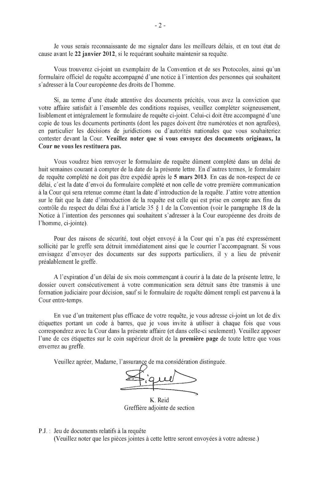 Annexe 8 – Requêt du 10. Octobre 2012 faite devant la Cour Européenne